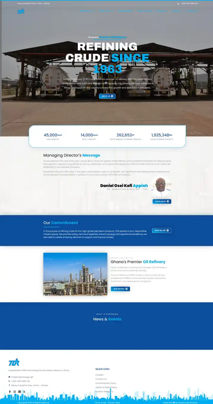 Our collaboration with Tema Oil Refinery resulted in a modern website that reflects their industry leadership. The site’s enhanced communication features led to a 40% increase in stakeholder engagement. Elevating TOR’s digital presence has strengthened trust and transparency with their audience.